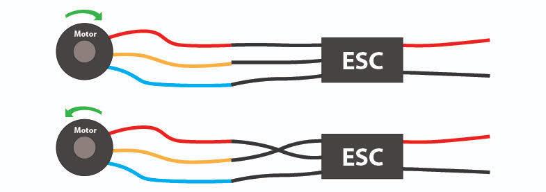 - If the propeller pushes air towards the front (reverse thrust), swap any two motor wires to correct the rotation direction.